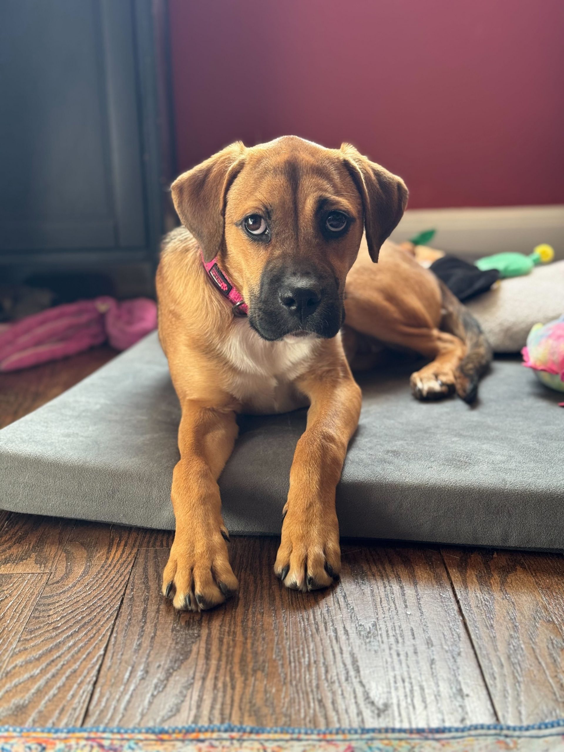 Hi! I'm Fluffernutter, your soon-to-be best friend. Every day, I wake up ready to play and explore. I love making my human friends laugh with my goofy antics. I'm also super brave when we go on adventures, always curious about what's around the next corner. I'm friendly with everyone I meet and just love being part of the action. If you're looking for a loyal companion to share in all your fun, I'm your gal! Why not come meet me? I'm sure we'll be great friends!