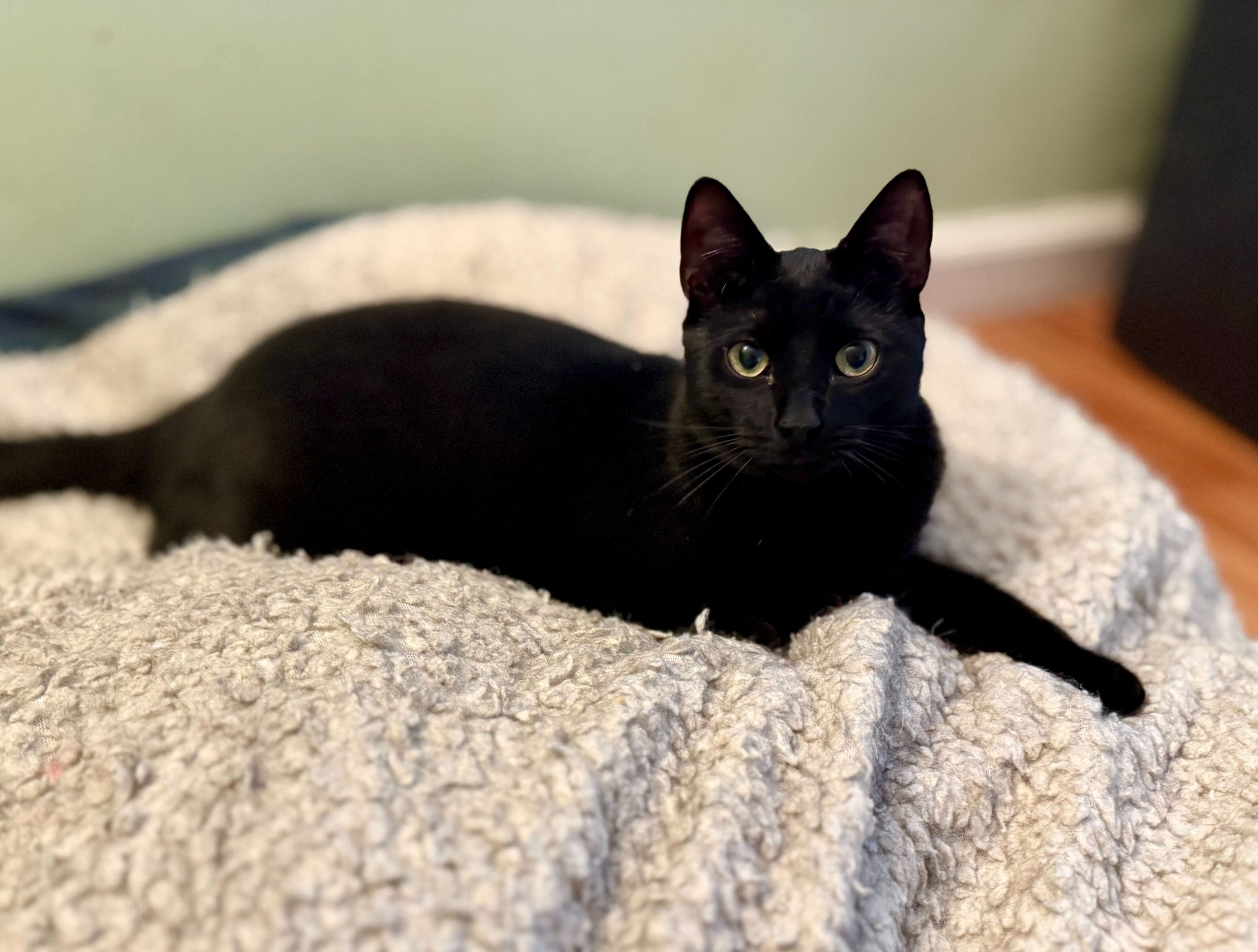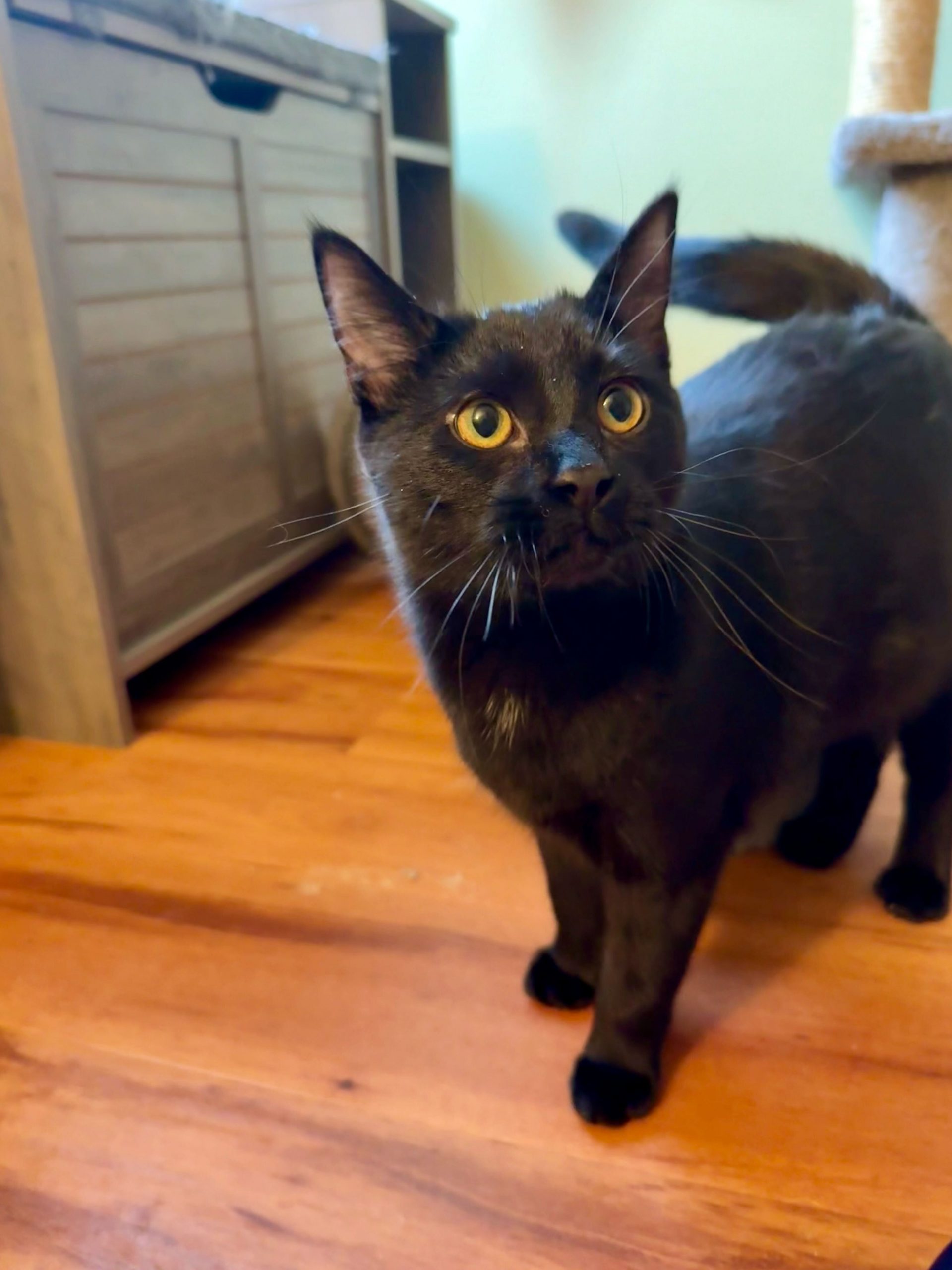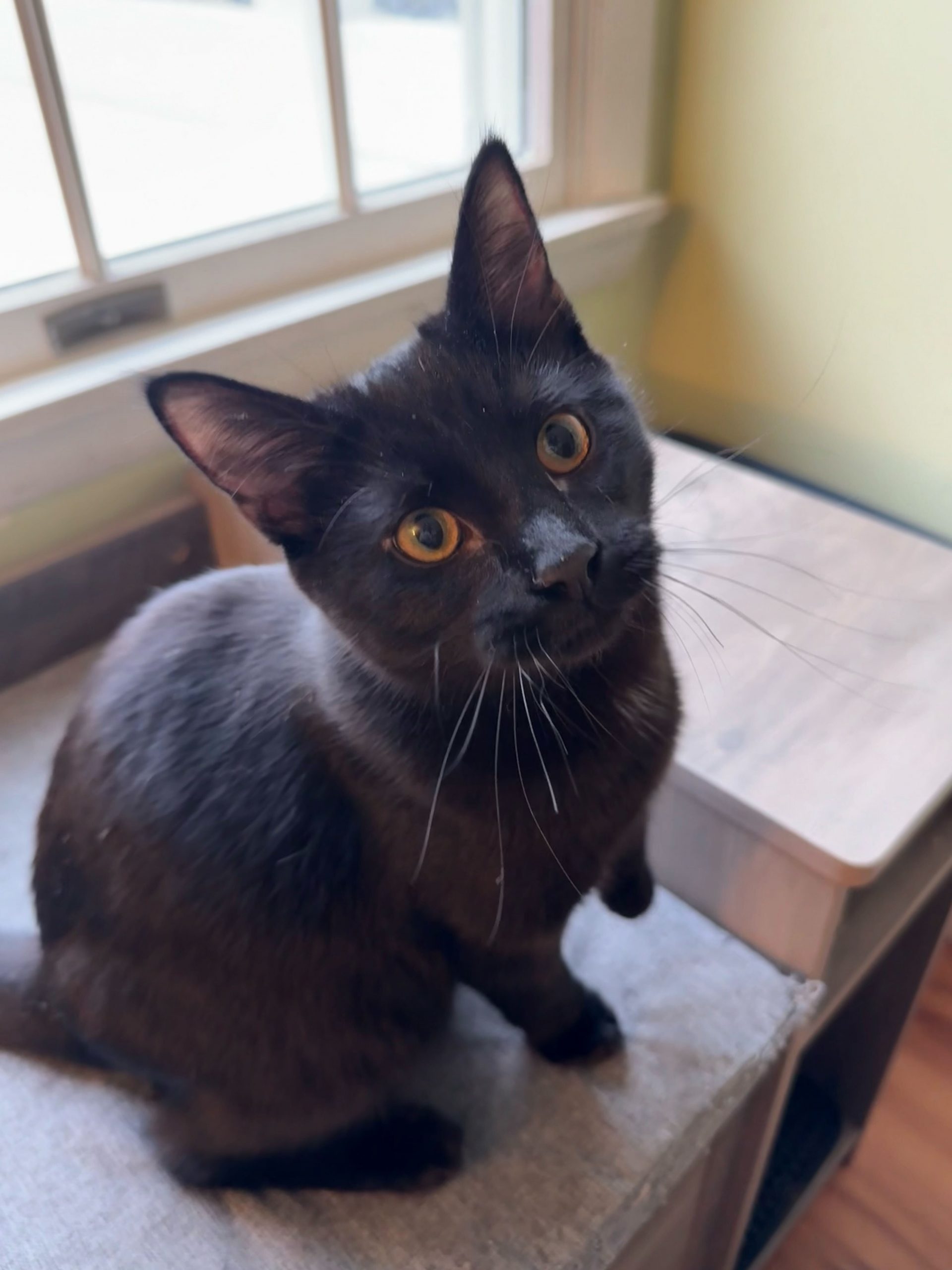 Are you looking for a companion who is as sweet as sugar and twice as crust-worthy? Look no further than Meowpie! While she might look like a little shadow, her personality is bright enough to light up any room. She’s the perfect mix of mellow and playful—basically, she’s a cutie-pie with a side of purr-fection. Don't let this sweet treat settle on the windowsill for too long! Meowpie is filled with love and ready to be the apple of your eye. Adoption is a piece of cake—or in this case, a piece of pie.